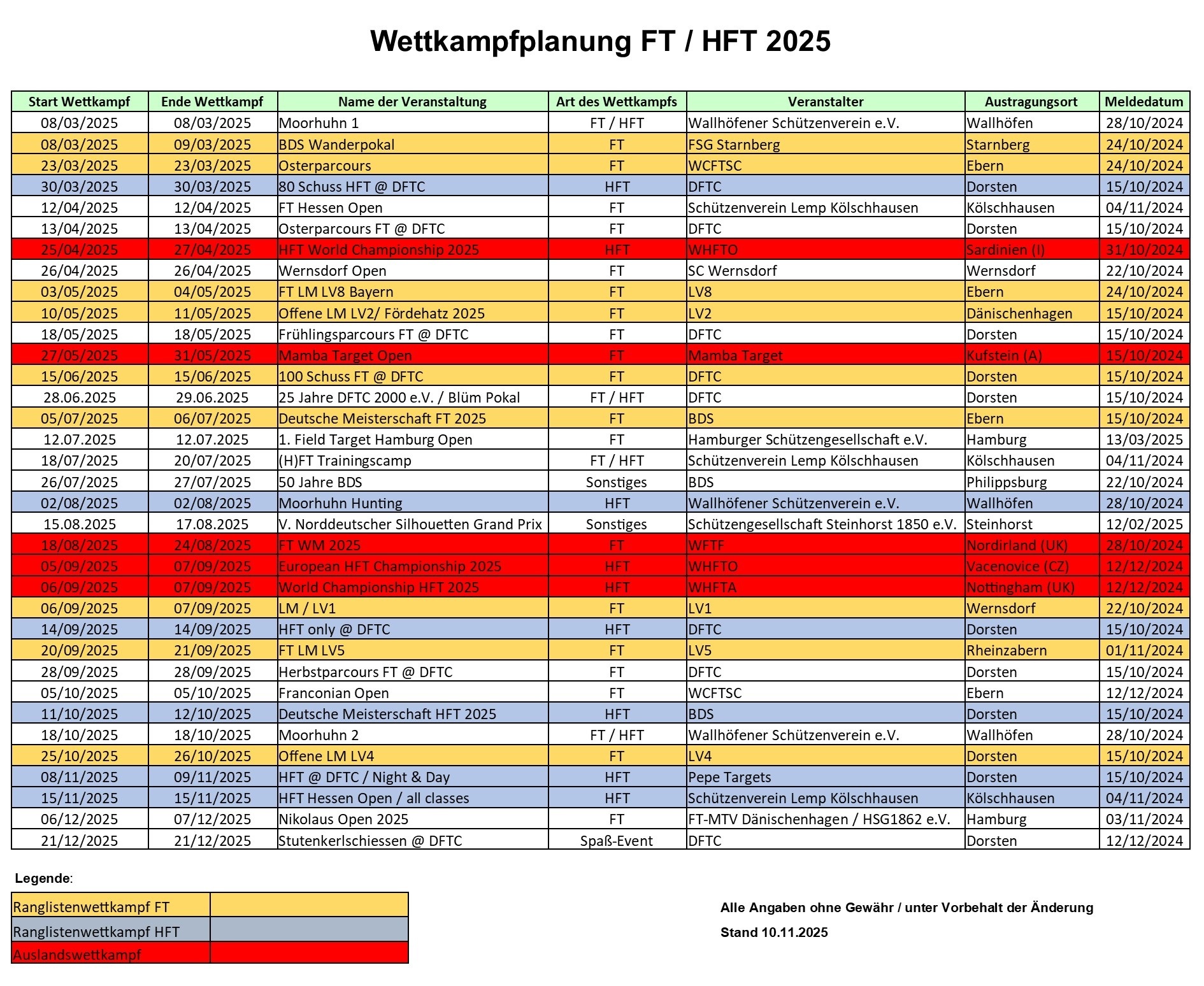 Die Ausschreibungen der einzelnen Wettkämpfe werden von den jeweiligen Veranstaltern zeitnah im Field-Target-Forum unter "Wettkämpfe" veröffentlicht.